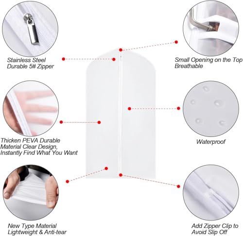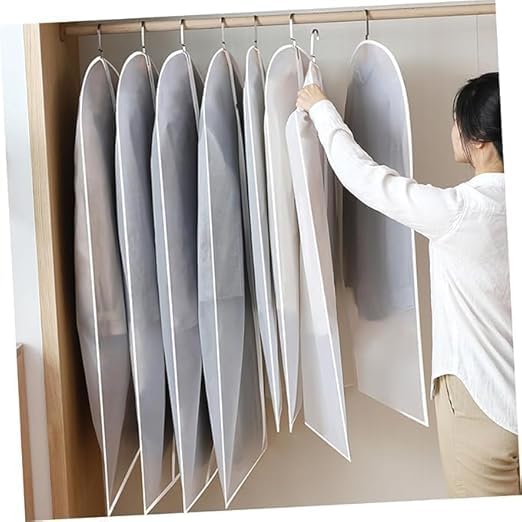 Generic - Set of 5 60x140cm Long Garment Bags For Closet Storage Plastic Suit Cover With Zipper Waterproof Semi Transparent Clothes Protector For Suits, Coats, Jackets and Dress White