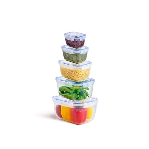 • VERSATILE SIZES: Set includes 5 stackable containers ranging from 550ml to 5000ml capacity for various storage needs