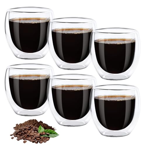 LDERFIV - Set of 6 Cappuccino Glasses, Double-Walled Coffee Glasses, Latte Macchiato Coffee Glasses, Double-Walled Glasses, Thermal Glasses, Coffee Glasses, Espresso Cups, Glass, Thermal Glasses, Coffee Glass,
