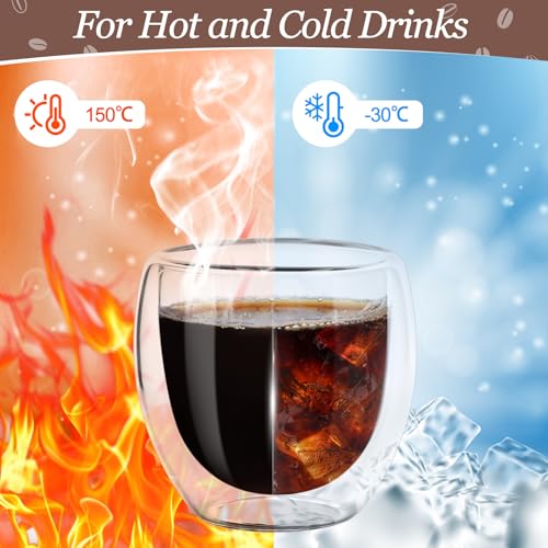 - HIGH QUALITY MATERIAL Made of high borosilicate glass, the clear glass coffee mugs are built to withstand daily drinking temperature from -30℃ to 150℃, perfect for hot espresso or cold refreshments.