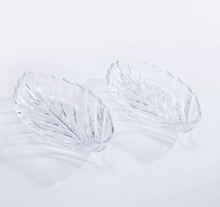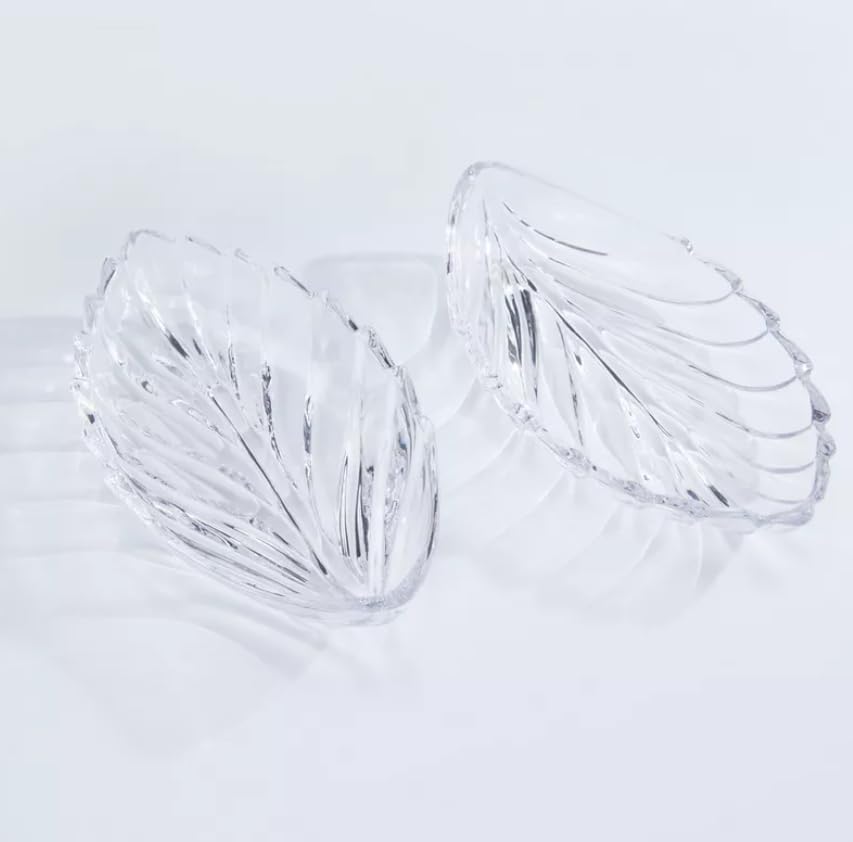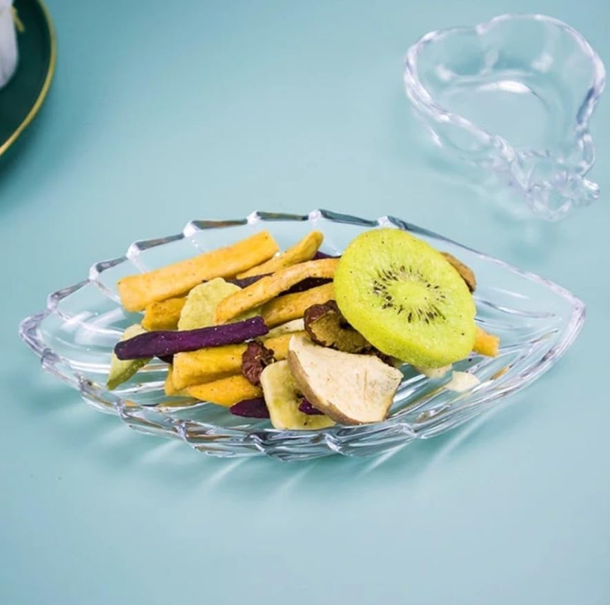 - 🌿 تصميم أنيق على شكل أوراق الشجر - تضيف الأطباق الزجاجية الشفافة ذات الشكل الجميل لمسة من السحر المستوحى من الطبيعة إلى إعداد طاولتك.