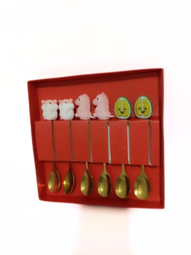 - Package Content: You will get 6 different types of spoons, gold strawberry rabbit spoons, brown bear gold spoons, white cat's claw gold spoons, rose frog gold spoon pineapple gold spoon this cute spoons set brings you a more happy taste experience in the end.