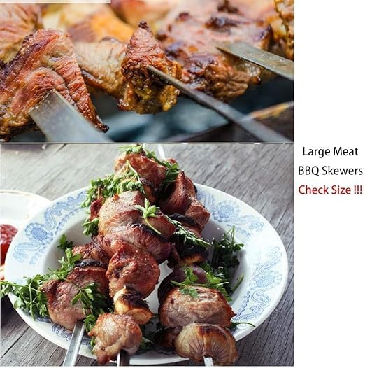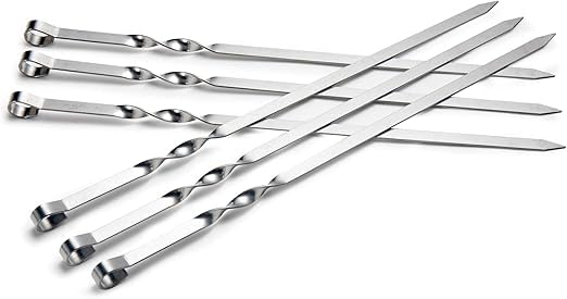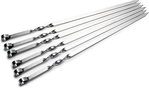Generic - Set Of 6 Flat Metal Kabab Skewers 44cm Stainless Steel BBQ Sticks For Grilling Shish Kebob Barbecue Wide Reusable Skewers Set Heavy Duty Barbecue Utensils For Meat Vegetables Outdoor Grill Cooking