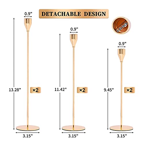 LYAFS - Set of 6 Gold Candle Holders for Taper Candles, Fits 3/4 inch Thick Taper Candle, Metal Candle Stand Decorative Candlestick Holder for Wedding, Candlelight Dinner, Party Tabletops Home Decoration