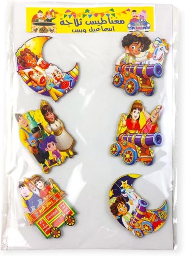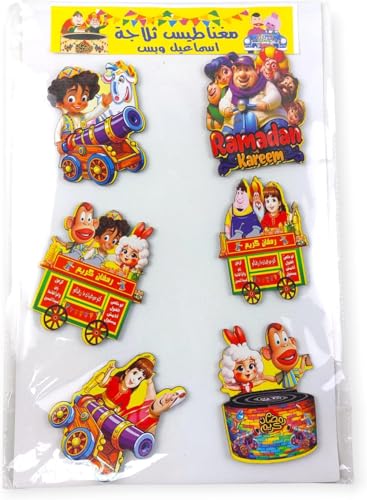 generic - مجموعة من 6 قطع - ديكورات رمضان مغناطيسية للثلاجة بتصميمات شخصيات شهيرة زينة رمضان مغناطيسية للثلاجة - تصميمات شخصيات رمضان الشهيرة - قابلة لاعادة الاستخدام للثلاجة والابواب - 6 قطع