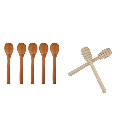 Generic - Set of 6 small wooden spoons - beige + Honey Dipper Sticks, 2Pcs Wooden Portable Honey Spoon Stick