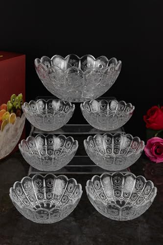 Generic - Set of 7 Fruit and Salad Bowls – 1 Large and 6 Small Elegant Glass Bowls for Serving Fruits, Salads, Snacks, and Desserts, Stylish Tableware for Home and Kitchen