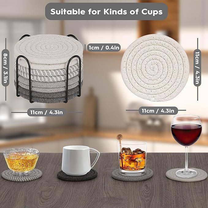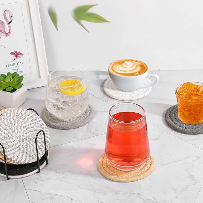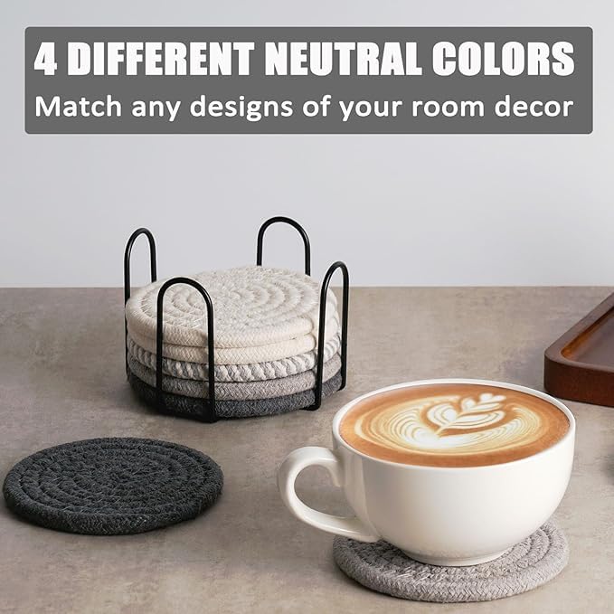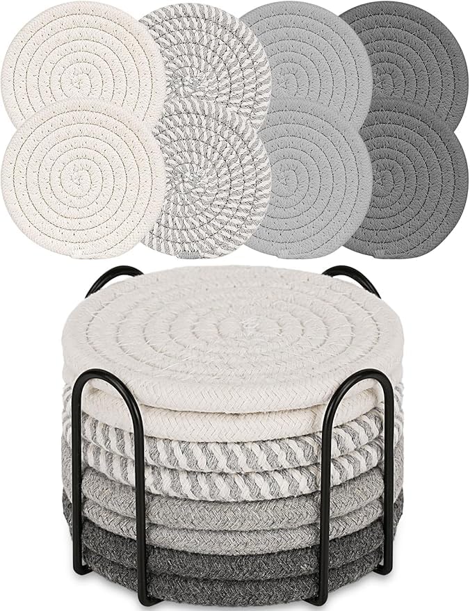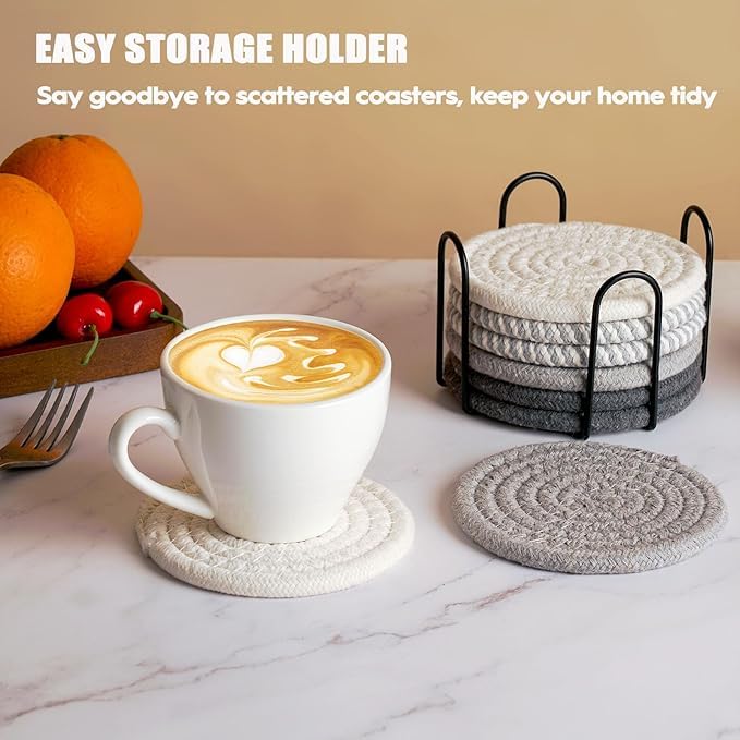Generic - Set of 8 drink coasters with holder, bohemian minimalist style, cotton fabric, beverage set, side table, home decor, bar, table protection, suitable for 4.3 inch cups (color 1)