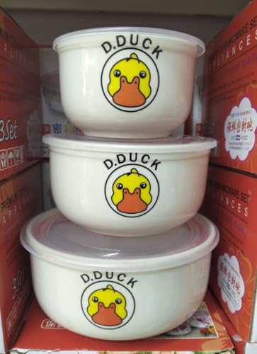 - ١) مجموعة حافظات: طقم من ثلاث حافظات طعام بأحجام مختلفة مع تصميم بطة لطيف