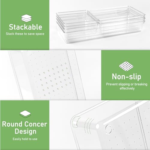 - تزيد من مساحة التخزين: من خلال احتواء وفصل أغراضك بدقة، تساعد هذه الصواني على التخلص من الفوضى وزيادة المساحة القابلة للاستخدام داخل الأدراج، مما يحافظ على كل شيء مرتبًا ويسهل الوصول إليه.