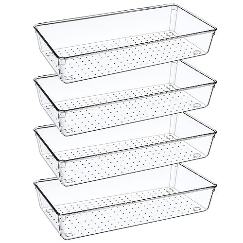 Generic - مجموعة صواني تنظيم ادراج بلاستيكية شفافة كبيرة لطاولة الزينة والمكاتب، نظام سلة تخزين اكريليك معياري لمستحضرات التجميل واللوازم المكتبية - 30.48 سم - 4 قطع