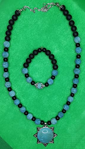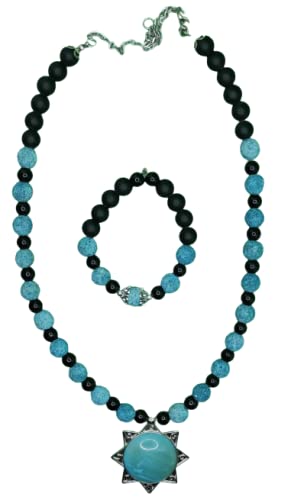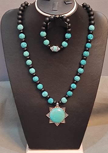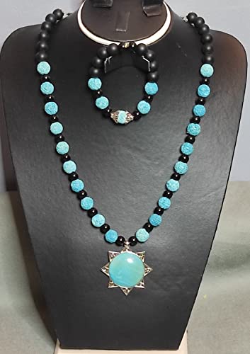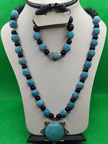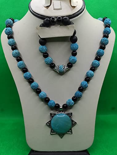Generic - Set of Necklace and Bracelet from Volcanic Stone - Multicolor - Turquoise Pendant - Malika Accessories