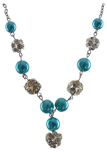 Other - طقم كريستال و لؤلؤ مكون من العقد قرط - ازرق فضي ، للبالغين من الجنسين
