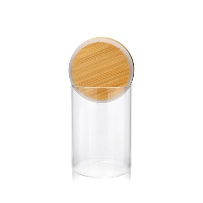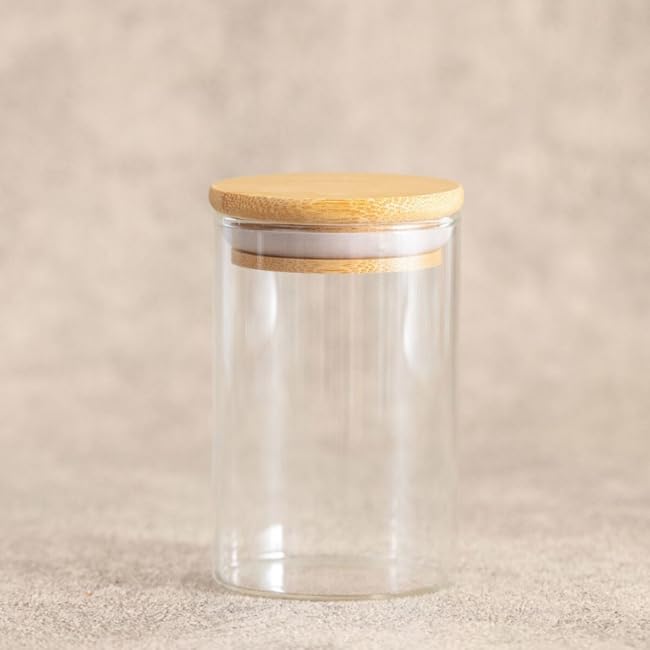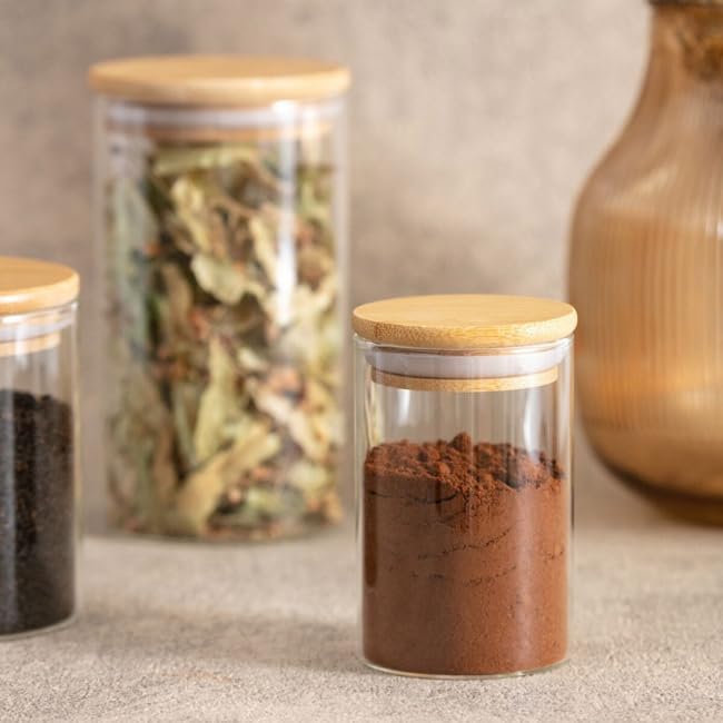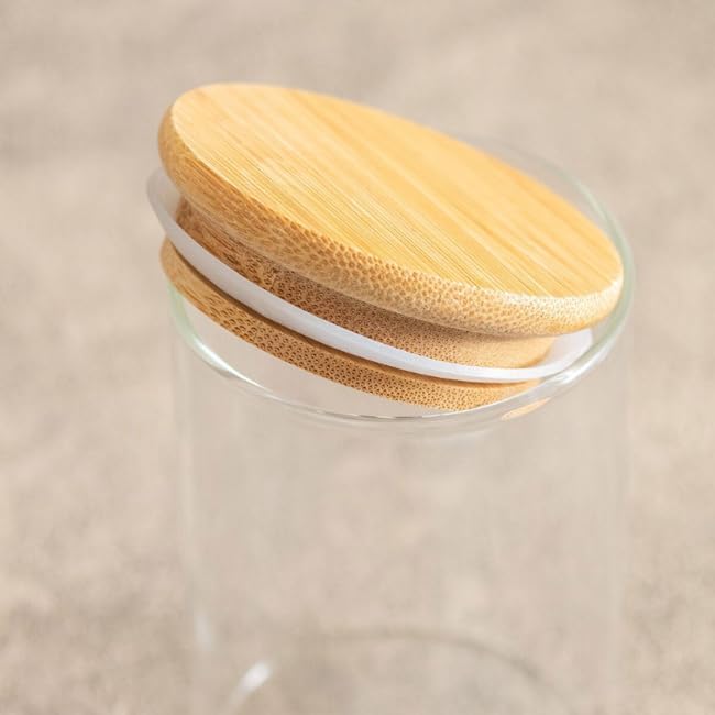 H-Home - طقم برطمانات أسطوانية صغيرة بغطاء خيزران محكم الغلق - 6 قطع - (250 مل)