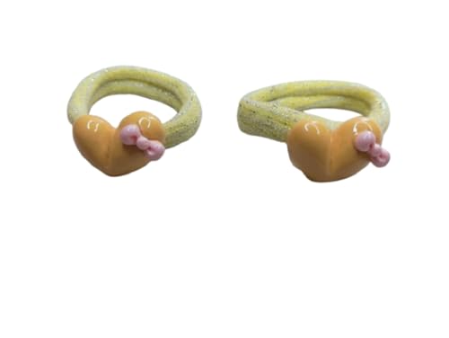 Generic - Set of Two Small Hair Ties with Heart Theme in Yellow