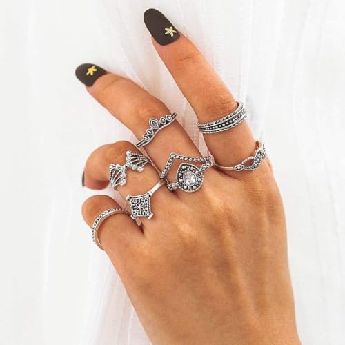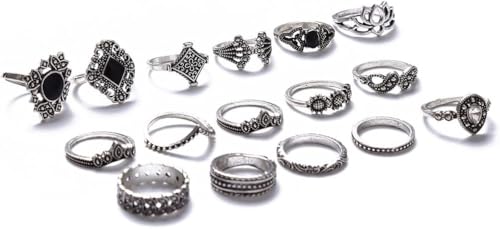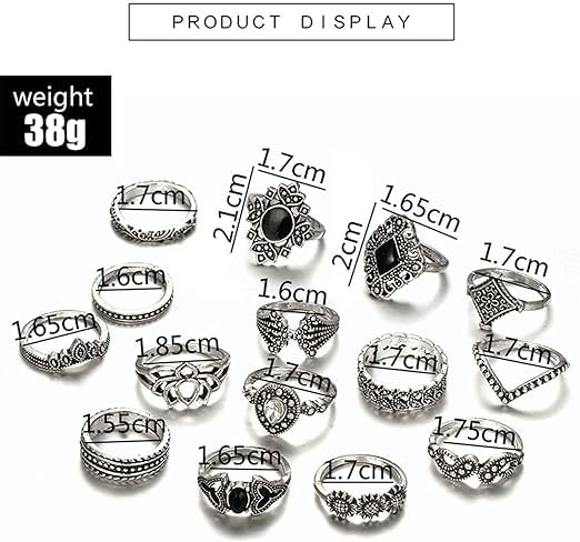 Generic - Set Ring Bohemian For Women Crystal Rhinestone Women Dainty Friendship Gift -15 Pieces Alloy