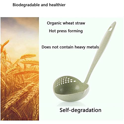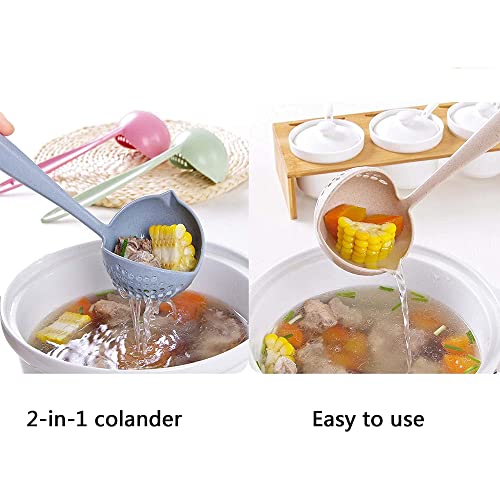 Setaria Viridis - Spoons for Soup Cooking Colander Two-in-one Tableware Hot Pot Dual-purpose Spoon Handle Round Wheat Straw Spoon Kitchen Tools Long Handle Soup Spoon Kitchen 3pcs