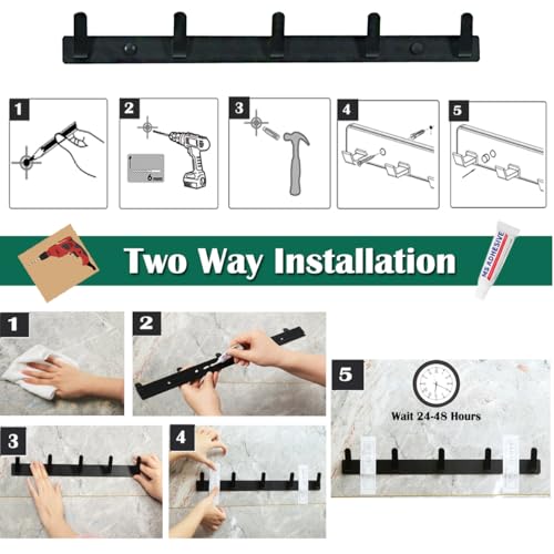 Sevenpers - Coat Hook with 3 Hooks Sturdy Coat Rack for Jackets Coats Black