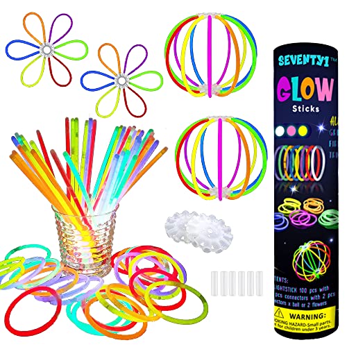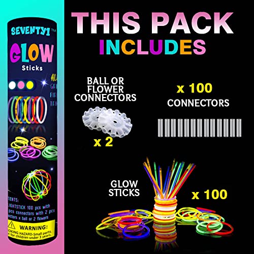 SEVENTY1 - Luminous Fluorescent Bracelets for Children and Adults, Set of 202, 8 Colors Fluorescent Glow Stick with Connectors for Party, Party, Carnival and Concert.