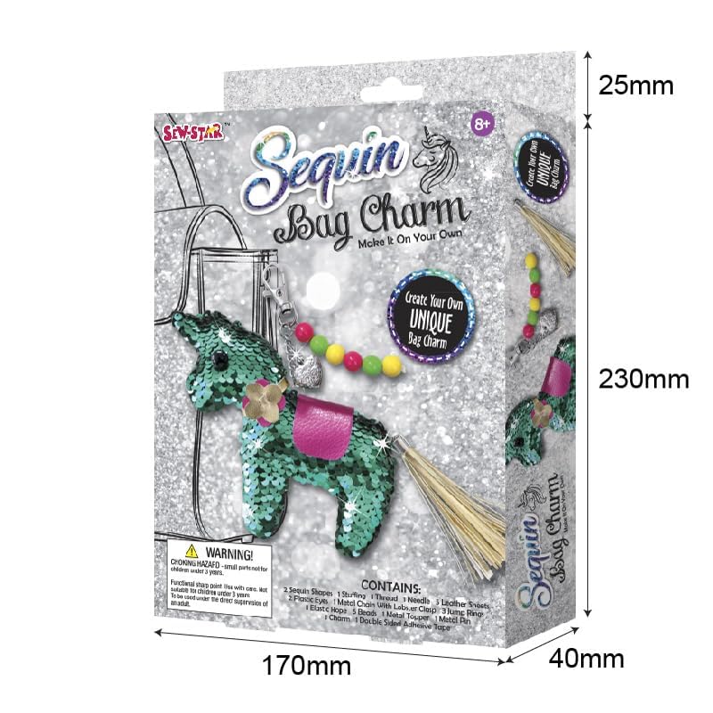Sew Star - Sequin Hanger Bag charm DIY for kids-Unicorn SS-18-011, 8+