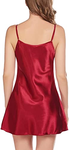 Generic - فستان لانجيري جذاب من الساتان بلون نبيذي