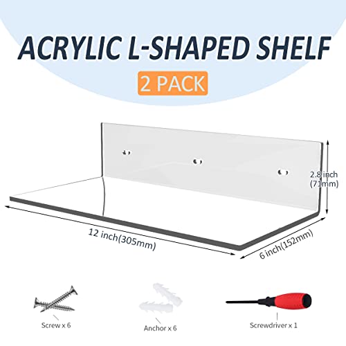 Sezanrpt - ارفف حائط صغيرة شفافة مقاس 12 انش حمام اكريليك للجدار عائمة لغرفة المعيشة فانكو بوب عبوة من قطعتين