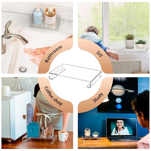 Sezanrpt - Acrylic Tray Pedestal Stand Bathroom Décor, Crystal Clear Display Risers Kitchen, Soap Dish Holder for Counter, Sink, Vanity, Stain Resistance, 10'' x 5.9''