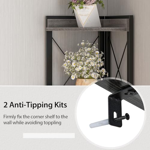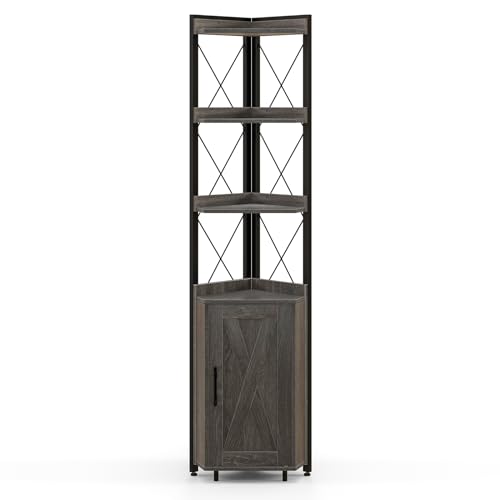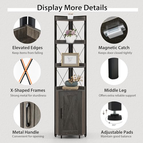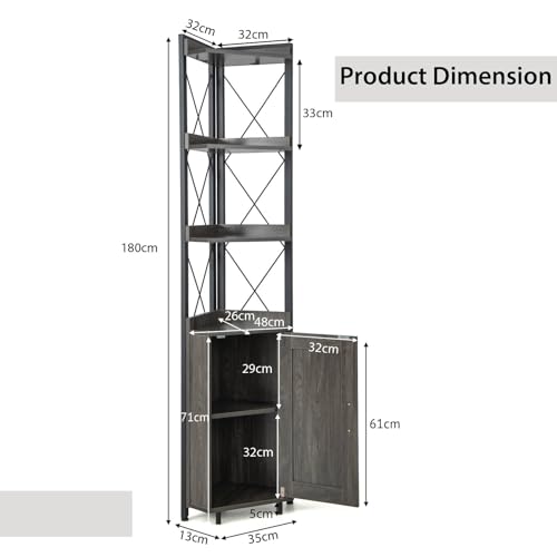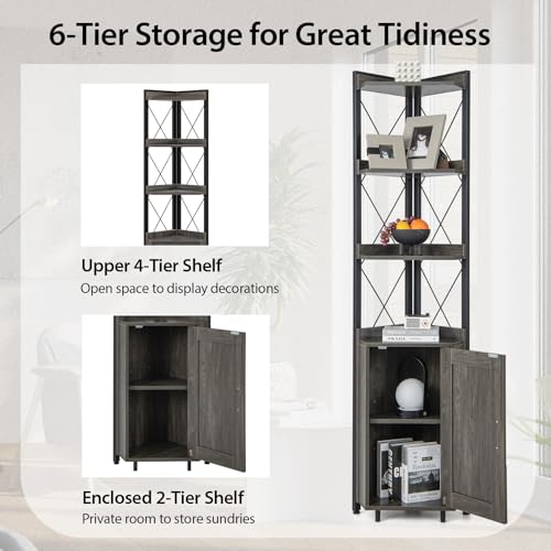SFAREST - 6-Tier Corner Bookcase, Wooden Display Storage Cabinet with Adjustable Shelf & Anti-tipping Device, Home Office Shelving Organizer Unit for Living Room Bedroom Bathroom (Grey)
