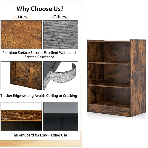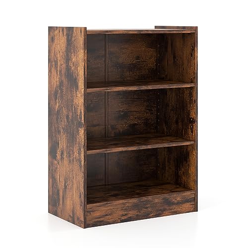 SFAREST - Wooden Bookcase, 3-Tier Compact Storage Bookshelf with 18-Positions Adjustable Shelves & Anti-toppling Device, Display Stand Shelving Unit for Office Bedroom Living Room (Rustic Brown)