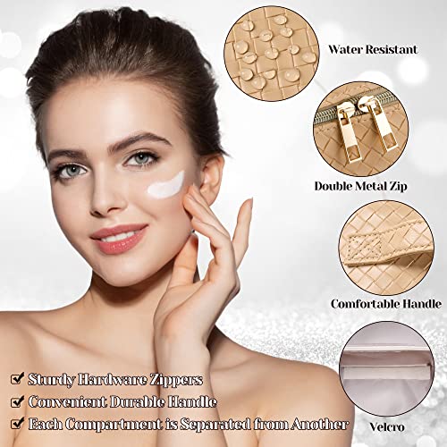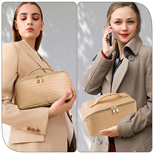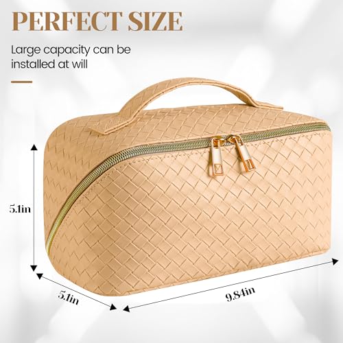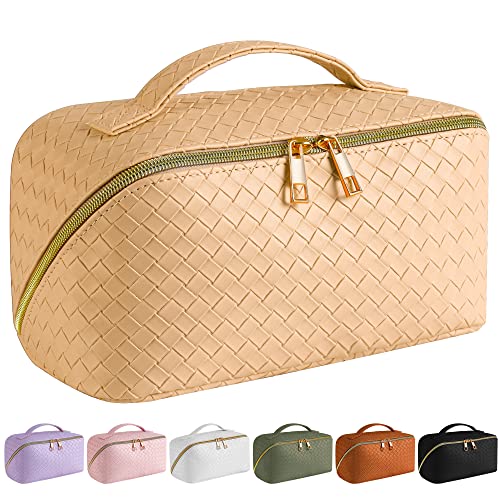 SFXULIX - اس اف اكس يو ال اكس شنطة مستحضرات تجميل للسفر بسعة كبيرة - شنطة مكياج، شنطة مستحضرات تجميل مقاومة للماء من جلد البولي يوريثين، شنطة مكياج محمولة للنساء مع مقبض ومقسم، شنطة منظمة للمكياج مسطحة، اصفر