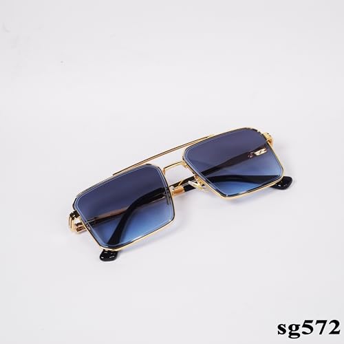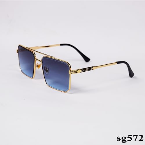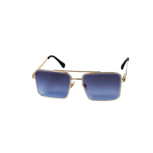 Generic - sg572 Gold-Tone Oversized Square Sunglasses with Blue-Tinted Lenses, 14 x 6 cm