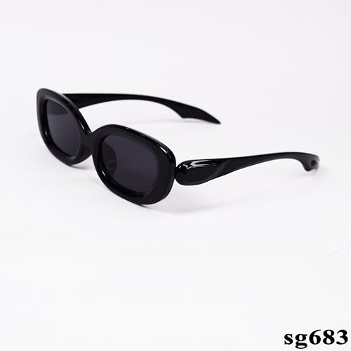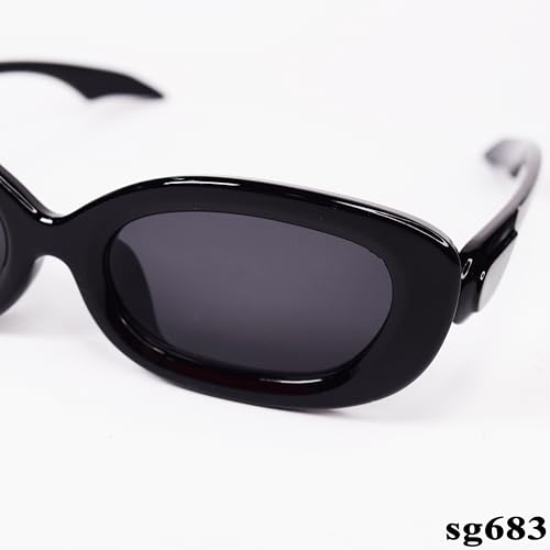 Generic - نظارة شمسية بيضاوية انيقة للحماية من الاشعة فوق البنفسجية موديل SG683، أسود