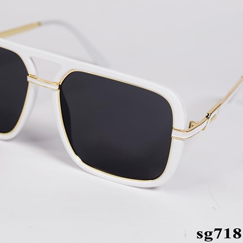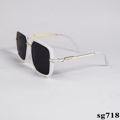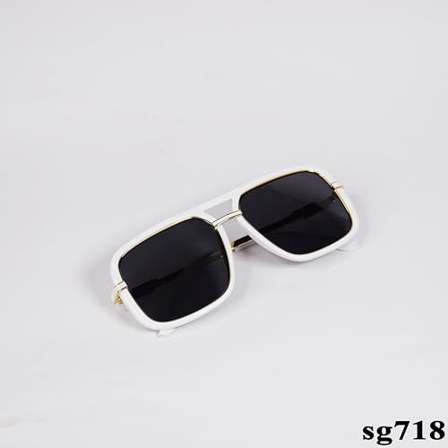Generic - نظارة شمسية ريترو مربعة الشكل باطار اسود وحماية 100% من الاشعة فوق البنفسجية موديل SG718