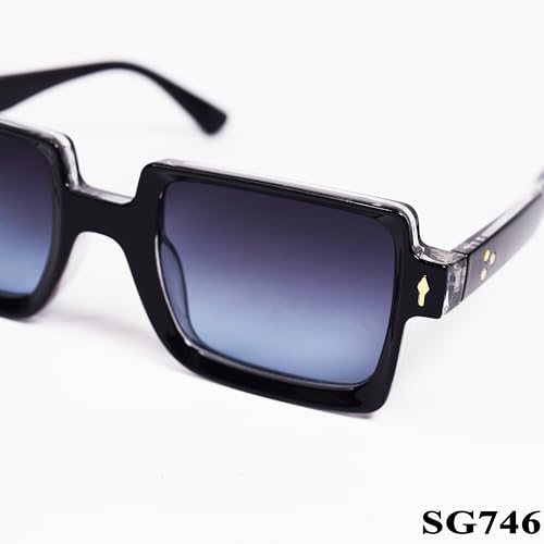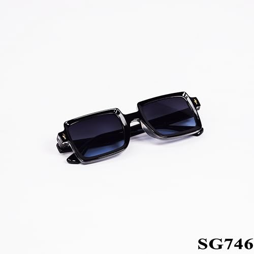 Generic - SG746 Unisex Rectangular Sunglasses, Black Frame, Gradient Tinted Lenses