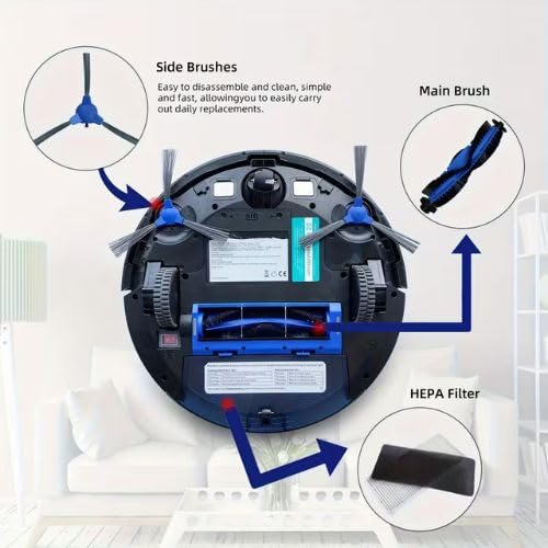 - Side Brushes: The two side brushes sweep along edges and corners, ensuring no area is left untouched.