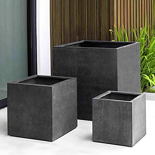 SHAHEEN FAROUK DESIGNS - اصيص زراعة نباتات مزخرف من حجر البوليستر شاهين فاروق ديزاينز مخصص للمكاتب وتزيين المنزل والحديقة طول 40 × عرض ارتفاع لون اسود