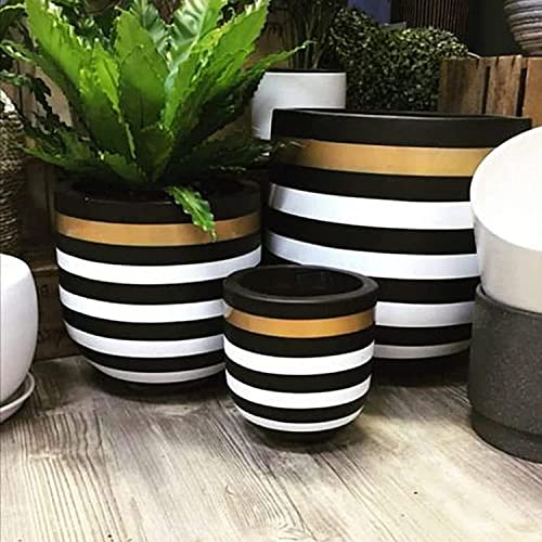 SHAHEEN FAROUK DESIGNS - وعاء مزخرف لزراعة النباتات من حجر البوليستر مخصص للمكاتب وتزيين المنزل والحديقة شاهين فاروق ديزاينز عرض 41 × ارتفاع 51.5 لون اسود وابيض