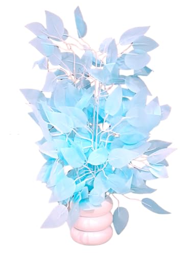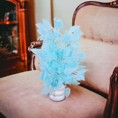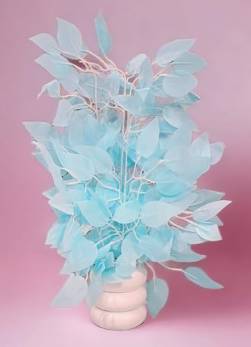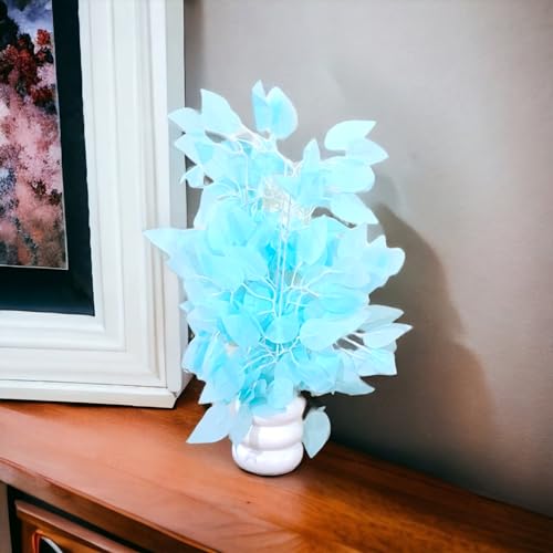 SHAKTISM - Artificial Ficus Plant with Pot, Fake Ficus Tree Branches, Artificial Greenery Wreath Plant for Home Office Indoor Outdoor Porch Décor – 1Pc (Light Sky Blue)