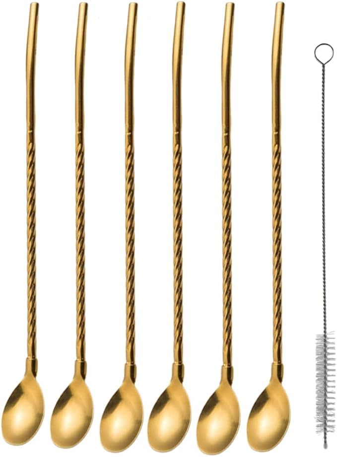 - طقم متعدد الاستخدامات: يتضمن 6 معالق طويلة بتصميم 2×1 مع فرشاة تنظيف، مثالية المشروبات والحلويات