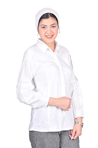 Generic - قميص قطن كاجوال سادة باكمام للنساء - لون اوف وايت