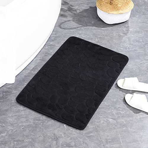 SHANLUO - SHANLUO Bath Mats for Bathroom Non-Slip Memory Foam Rugs Area Decor Mat Accessories Washable Absorbent Rug Shower Door Entryway Floor Carpet Soft Thick Coral Fleece Plush Pebble Black 24x16 Inches