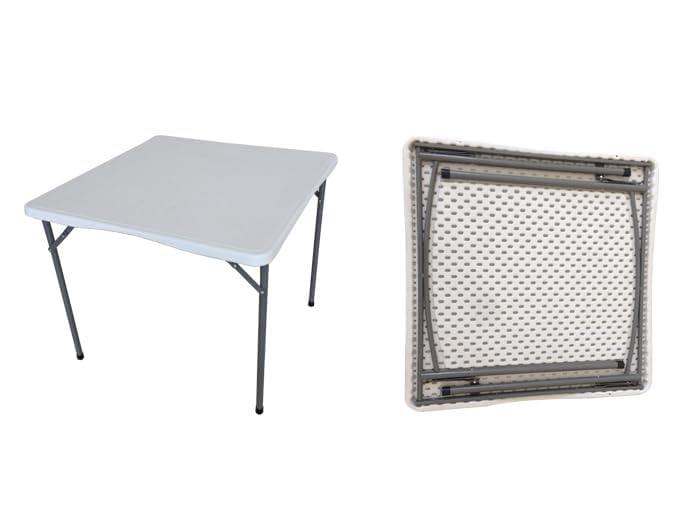 - Moulded plastic top with strong sturdy legs and includes handy carrying handle