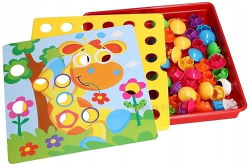Generic - Shapes Puzzle - colorful buttons - to develop your child's skills. Fun and entertaining, s hand muscles and has attractive colors. Contains 12 large cards in different cartoon shapes: lion, owl, fi