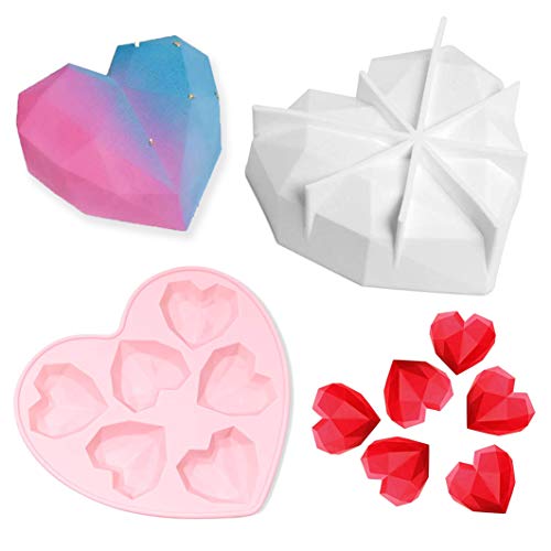 SHAREMORE - 3D Heart Silicone Mold, NEW Diamond Heart Mold, Silicone Baking Pan-Food Grade & BPA Free-Not Sticky Mould, Suitable for mousse, chocolate brownie, jelly, ice cream, cheesecake.