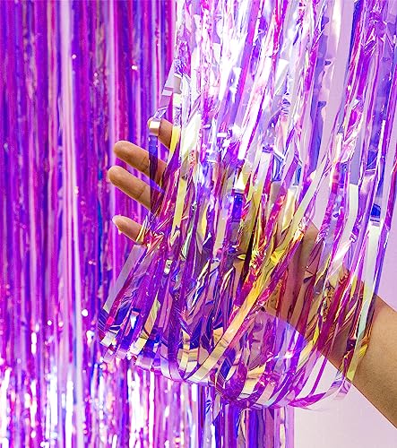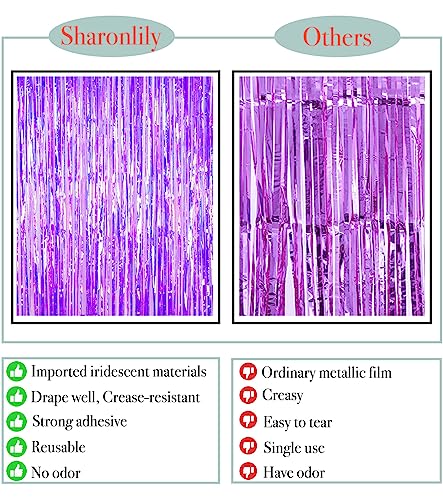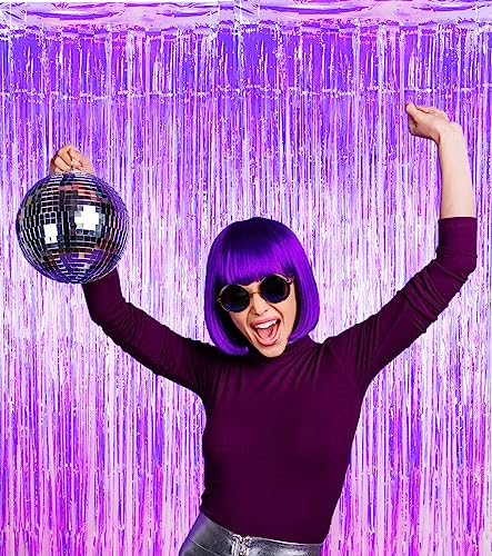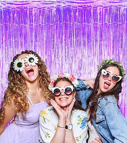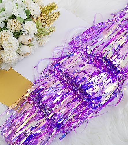 Sharonlily - Gorgeous Iridescent Purple Foil Fringe Curtain-2 Pack 3.2x8.2 Feet Premium Neon Purple Metallic Streamers Photo Booth Backdrop for Birthday Ceremony Graduation Party Decorations (Purple)