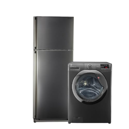 Sharp - Sharp ELARABY Home Appliances Bundle ( SJ-48C(ST) No Frost Refrigerator 2 Doors Stainless - 340 Liters and HOOVER Washing Machine Fully Automatic 7 Kg, Silver H3WS173DC3R-ELA)
