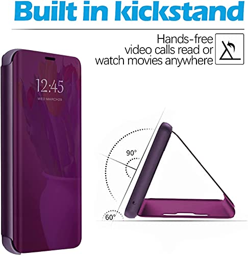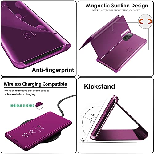 Fiyer - جراب حماية بالكامل 360 درجة رفيع للغاية صلب هجين بمراة عاكسة بتقنية كلير فيو، مصنوع من بولي كربونات وجلد صناعي، لموبايل سامسونج جالاكسي S22 الترا , أرجواني.