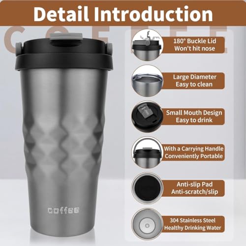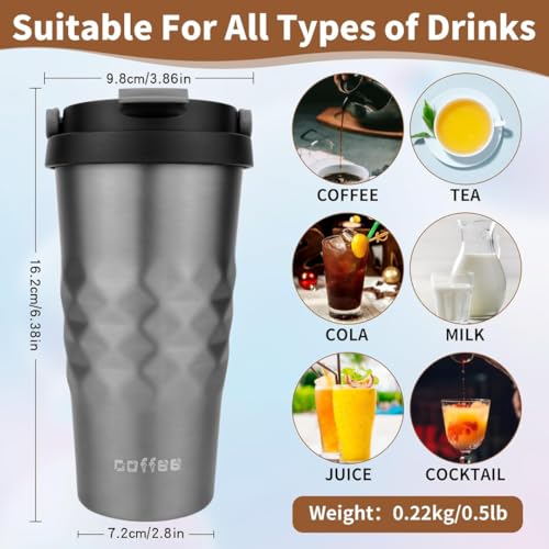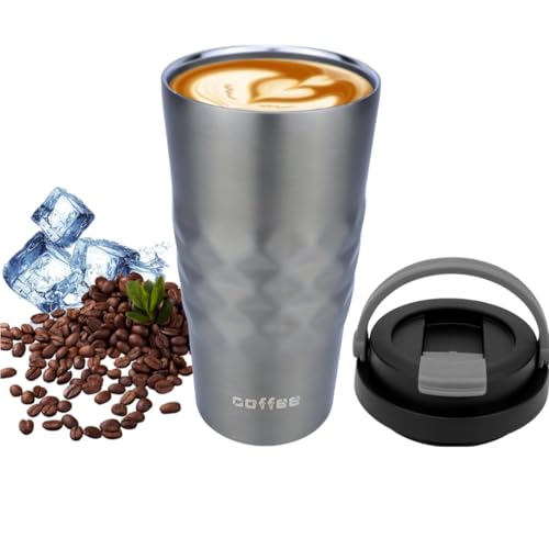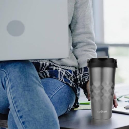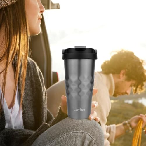 Shatoora - 500ML Insulated Stainless Steel Travel Mug with Lid – Reusable Spill-Proof Coffee Mug for Hot and Cold Drinks – Double Wall Vacuum – Gray