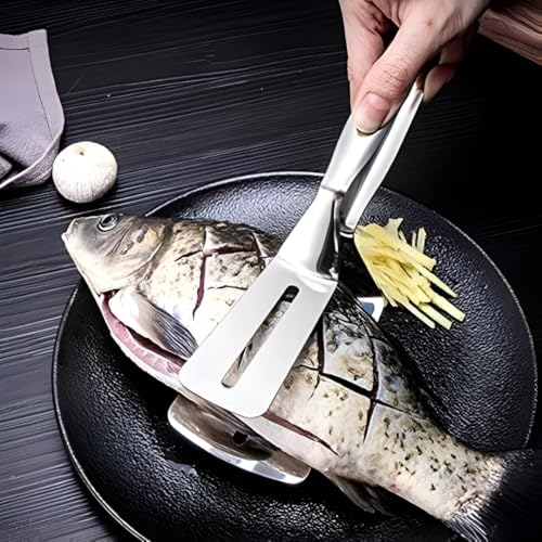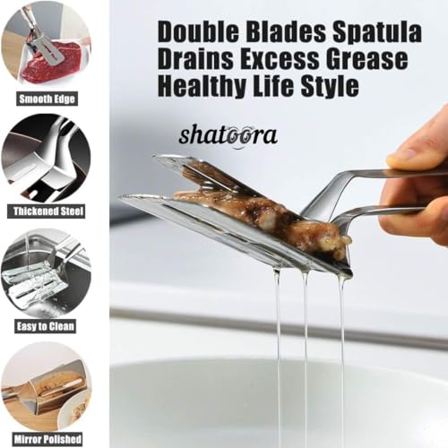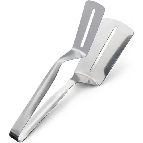 Shatoora - Original Premium Multi-Purpose Stainless Steel Tongs and Spatula, 2 in 1 – Non-Stick, Heat-Resistant Kitchen Tool for Frying, Flipping and Steak Handling, 26.5 x 7.5 cm, Made in USA