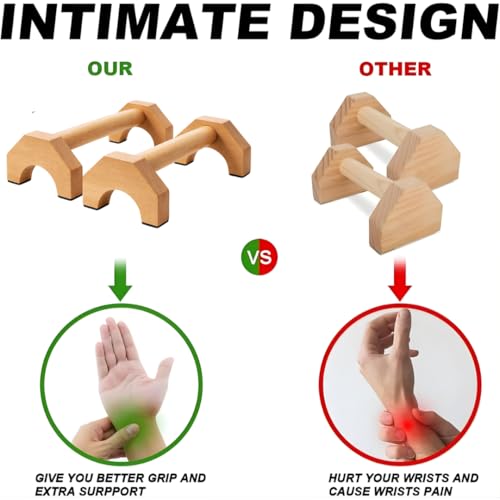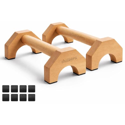Shatoora - حوامل دفع ومسند يد من خشب الزان الفاخر من شاتورا، معدات لياقة بدنية متعددة الاستخدامات وشديدة التحمل مع مقابض مطاطية غير قابلة للانزلاق، قطعتين